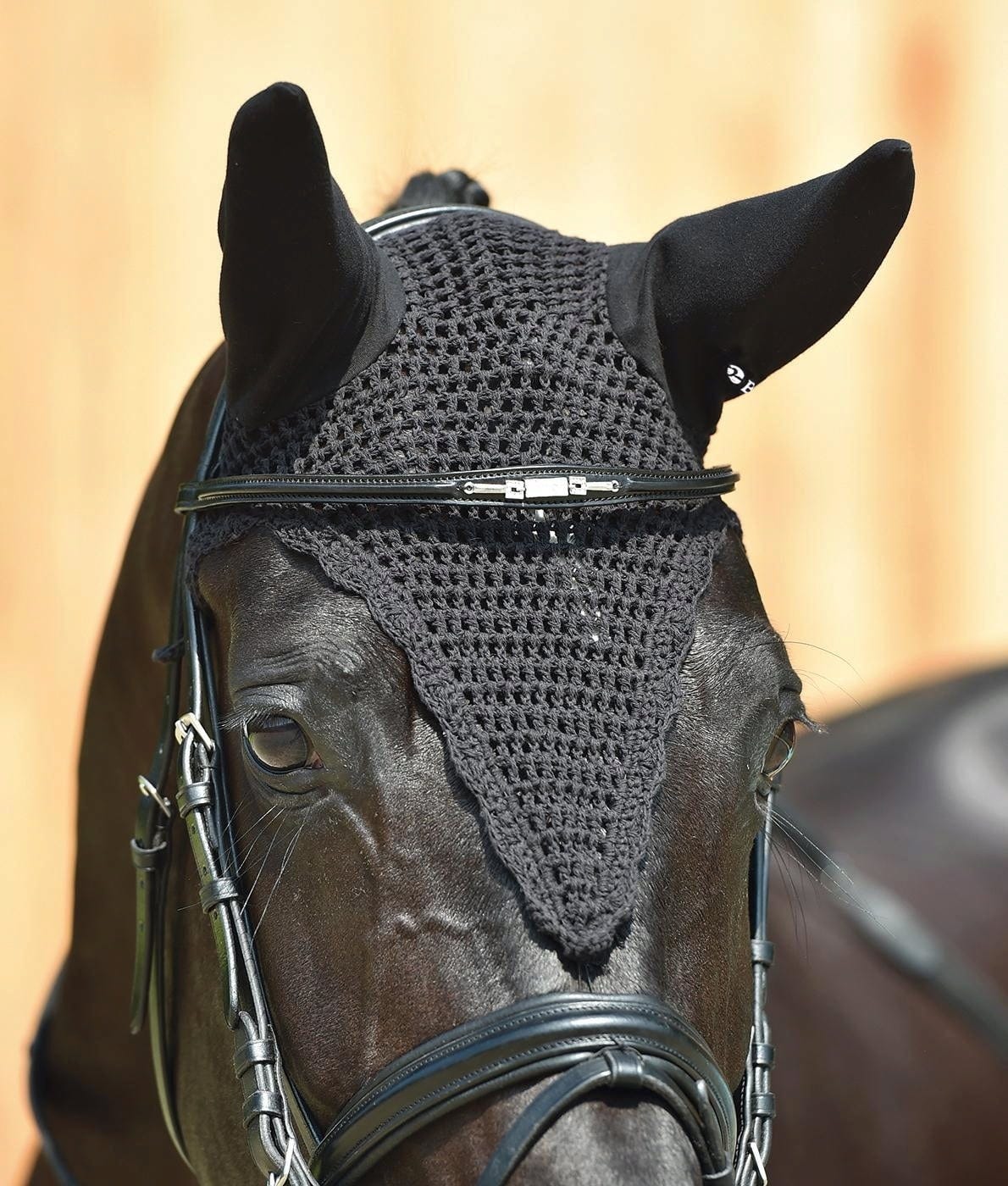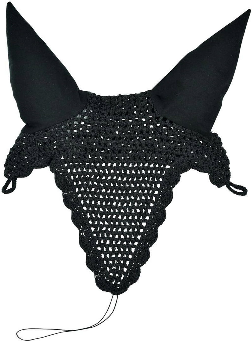 This fly veil is made of tightly crocheted cotton. The closed ear covers are made of elastic and jersey material that easily shapes to the ears.