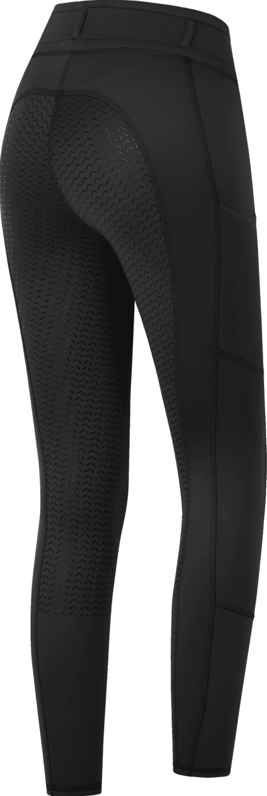 A high-quality silicone full seat, featuring a subtle logo print, ensures a non-slip grip. The mobile phone slide-in pockets are a particularly practical detail, allowing a smartphone to be stowed securely and kept within reach at all times while riding. The combination of functionality and sporty design makes these leggings the ideal companion for daily training.