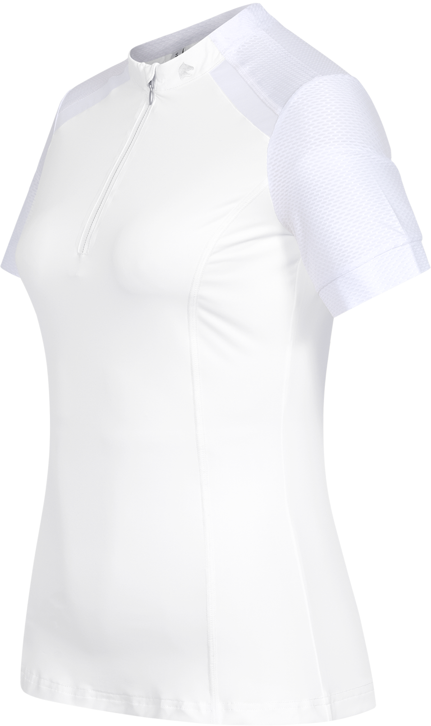 The Nancy functional zip shirt is the ideal choice for training on warm days or as a breathable layer beneath a riding jacket. In white, it is also an excellent option for competition days. Featuring a tailored fit and high-stretch technical fabric, it conforms perfectly to the silhouette without restricting movement. Integrated mesh inserts at the shoulders and down the centre of the back ensure excellent air circulation and a consistently dry feel.