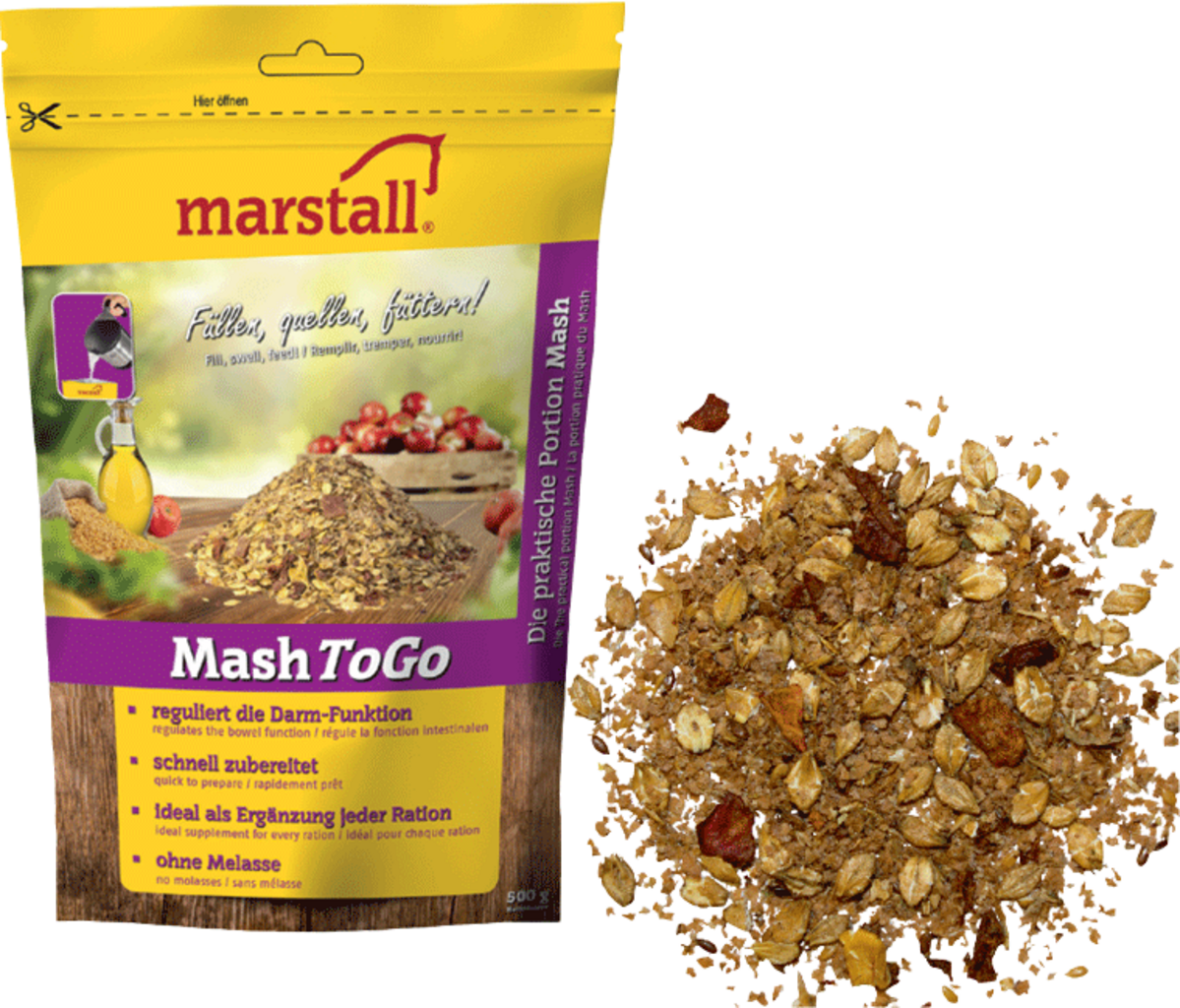 marstall's Mash is a practical mixture for healthy digestion and a beautiful shine for your horse's coat. The recipe is based on proven original ingredients and careful research. marstall's Mash stimulates appetite and digestion and is therefore an ideal choice for picky horses. Older horses also benefit from the soft consistency.