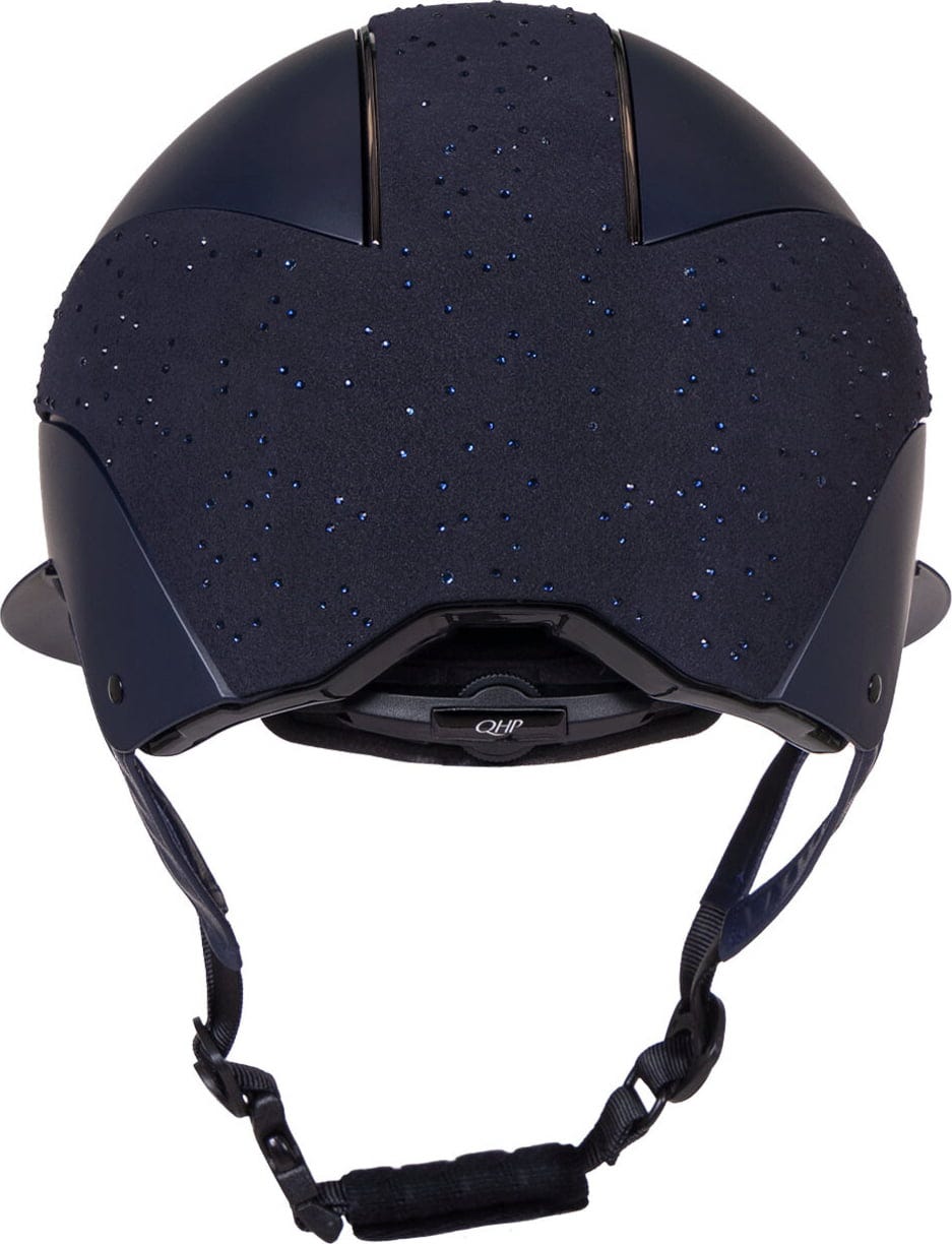 The Ohio riding helmet by QHP is a stylish and comfortable choice that leaves nothing to be desired. Its elegant outer shell is adorned with sparkling rhinestones, creating a striking look that catches the eye. The polo-style peak not only adds a chic touch but also provides excellent visibility, even in bright sunlight. For maximum comfort, the integrated ventilation panel keeps your head pleasantly cool.