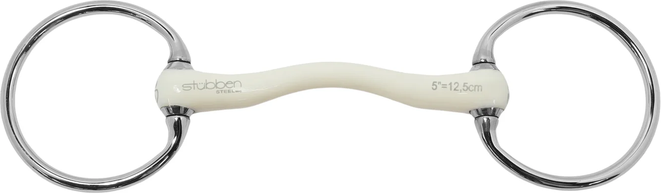 The plastic used for the mouthpiece is a comfortable alternative to pure metal and is ideal for horses who prefer a flexible contact surface. The robust stainless steel elements on the outside guarantee stability and a longer lifespan. This is therefore a functional bit for riders who value a quiet contact and a technically sophisticated design.
