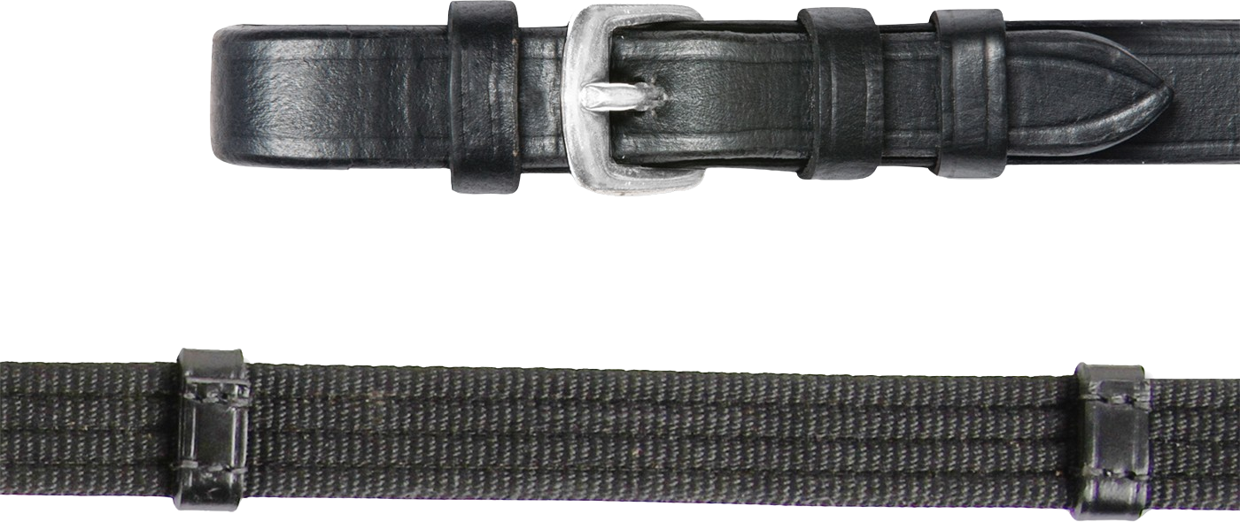 Part of the high-quality collection of reins by Waldhausen, these reins feature excellent workmanship and top leather quality, which guarantees durability. The grip surface is made of robust webbing, which ensures a secure grip in the hand. The web reins are equipped with sturdy leather bars for even rein guidance and simplified length correction. A practical martingale slider is also included. The elegant and durable stainless steel buckles round out the classic design.