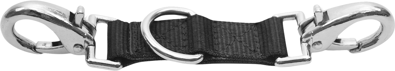 Sturdy snap hooks are attached to both ends, allowing you to quickly and securely fasten the coupling to your horse's bit. A practical D-ring is located in the middle, where you simply clip the lunge line. This is a small but essential accessory for effective lunging training!
