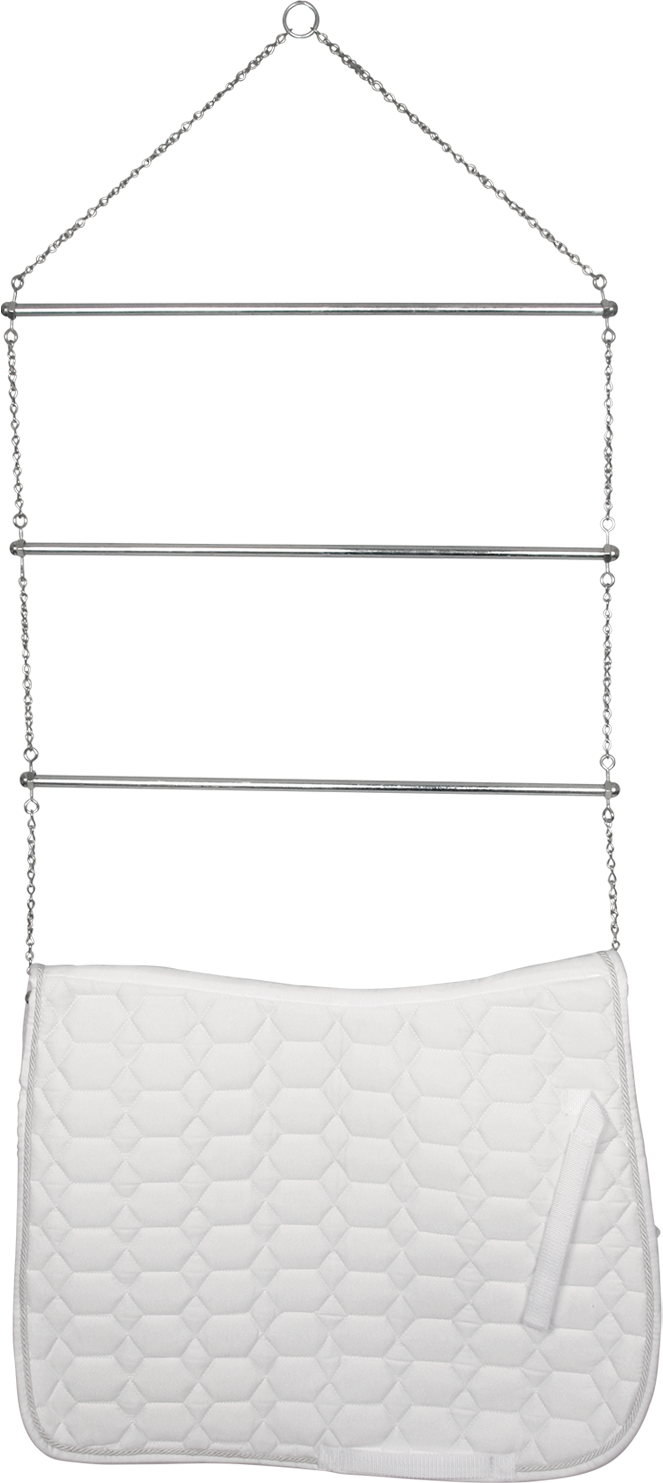 This allows your saddle pads and rugs to dry out after rides without taking up too much wall space. The practical ring at the top is a quick and easy way to hang it up from a hook in the wall or ceiling. A great accessory to keep your tack room neat and organised.