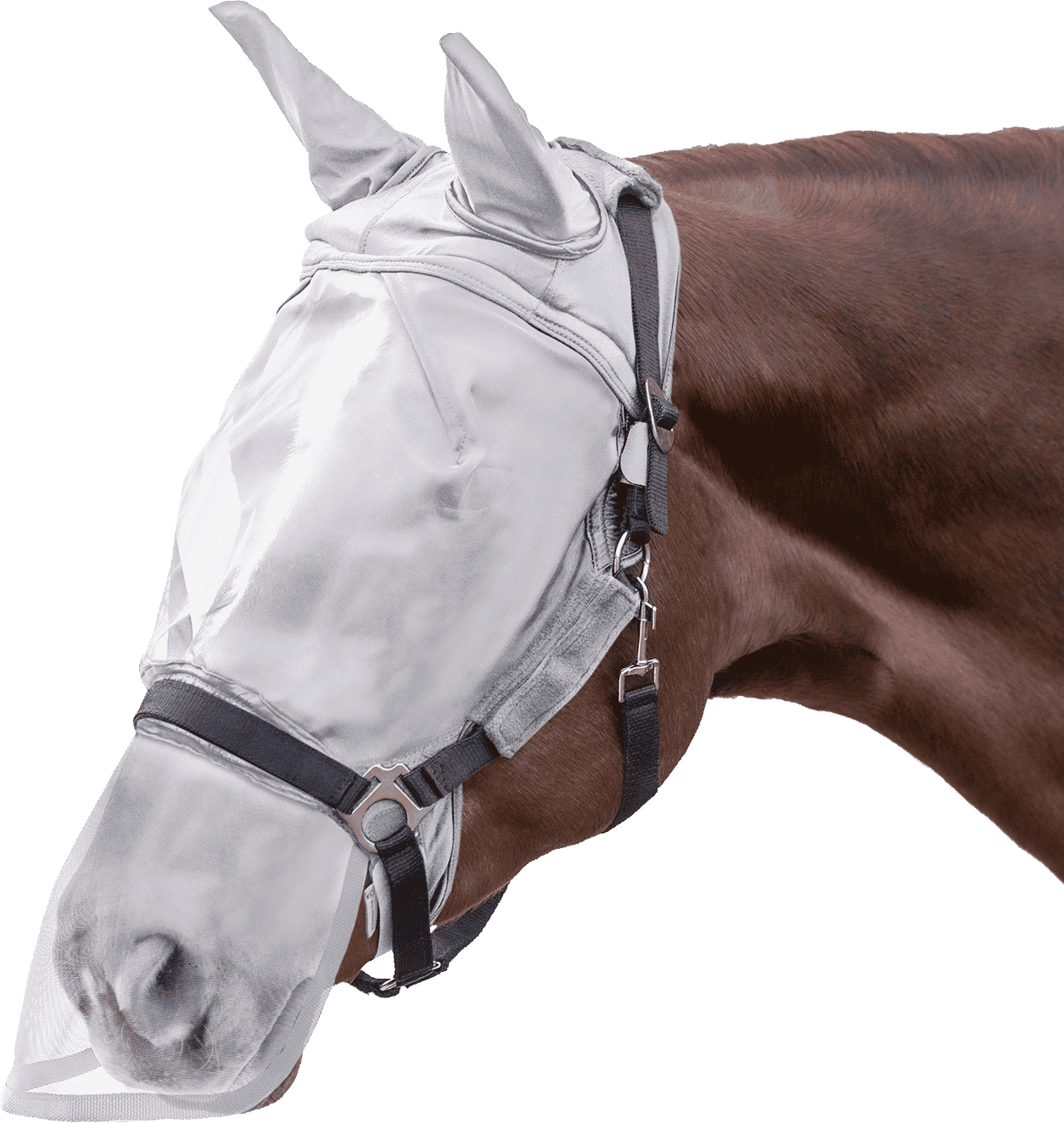 Premium Fly Mask for Halter with Ear & Nose Protection, Silver Grey